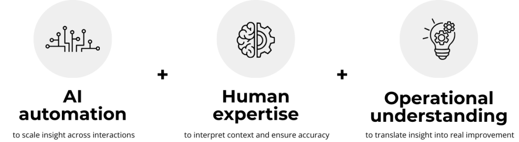 We believe organisations perform best when they truly understand what is happening inside their customer interactions — not just what the numbers show, but the behaviours, processes, and systemic factors driving those results.